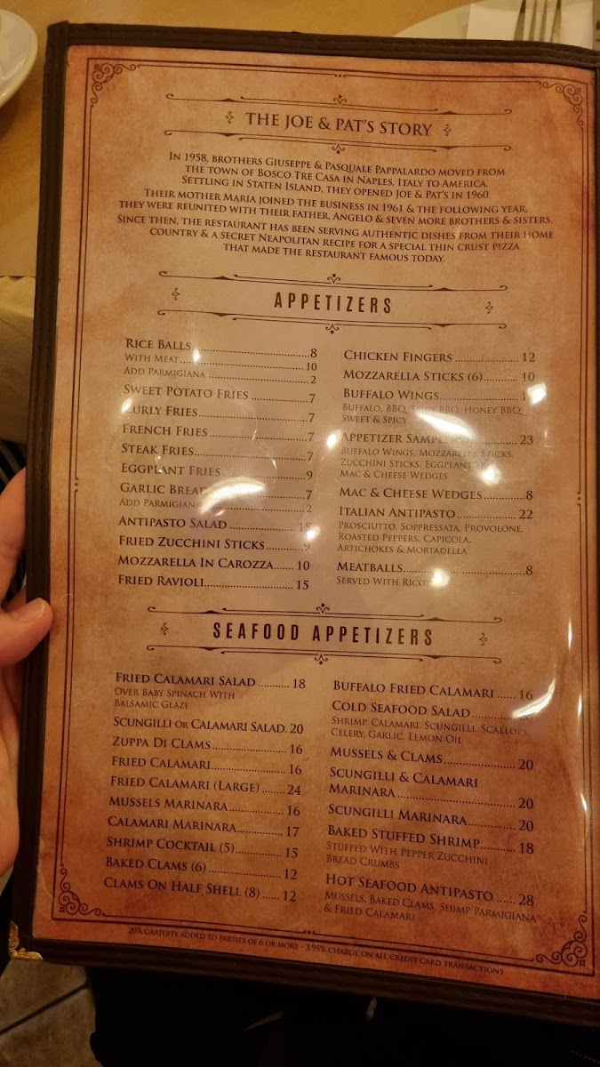 Overall, the food at Joe & Pat's fits comfortably into the familiar and easygoing dining experiences that Staten Island locals appreciate—simple, honest fare designed to be enjoyed without fuss.