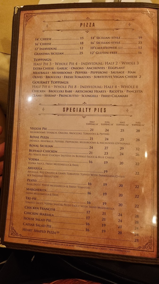 Joe & Pat's Pizzeria & Restaurant offers a straightforward and inviting menu that centers on classic Italian-American flavors. The selection feels like a casual neighborhood spot where you can enjoy comforting bites whether you’re grabbing a quick slice or settling in for a relaxed meal with friends and family. The menu balances well-loved pizza varieties—like the thin slice of cheese and pepperoni—with hearty options such as baked clams, veal parmigiana, and fresh salads.